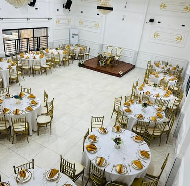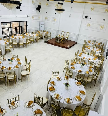 Espace idéal pour mariages, anniversaires et réceptions, offrant une ambiance festive et chaleureuse.